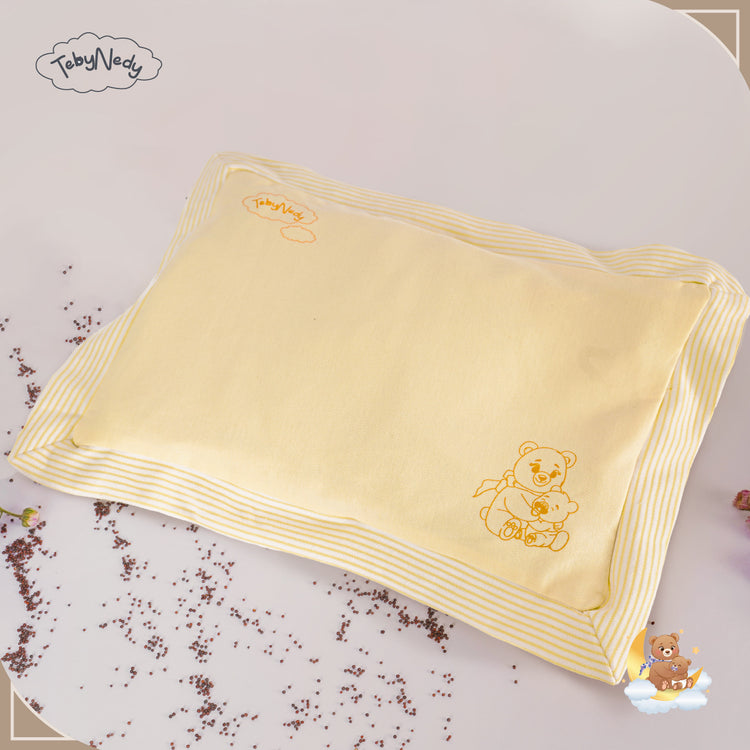 The outer cotton cover is fully removable and machine-washable, making it easy to keep clean and hygienic. The inner mustard seed pouch should not be washed — simply air it out in indirect sunlight once in a while. Regular washing of the cover ensures the pillow always remains fresh for your baby.