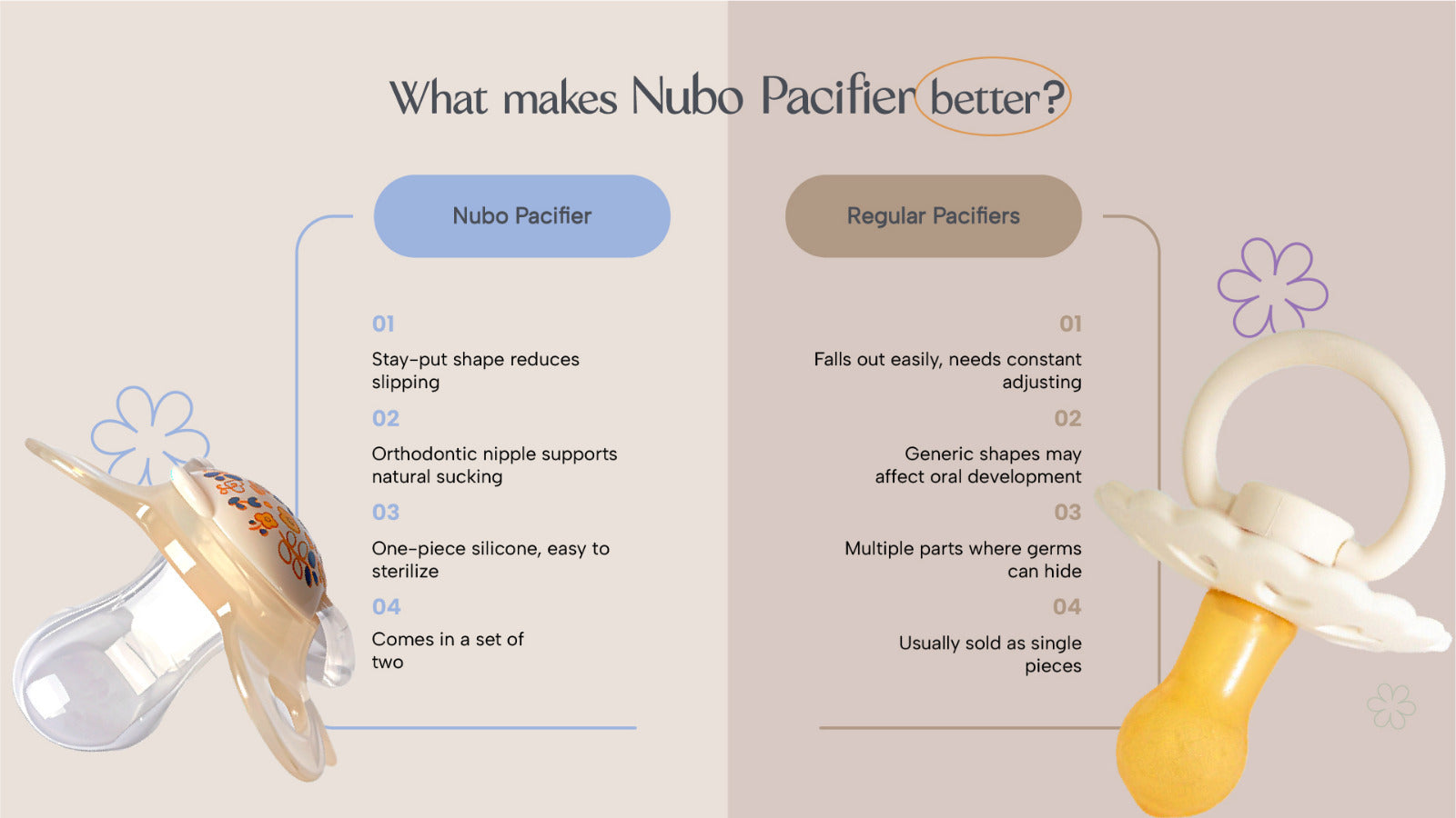 Comes with two pacifiers so there’s always a backup ready. Perfect for travel, stroller walks and emergency calm moments
