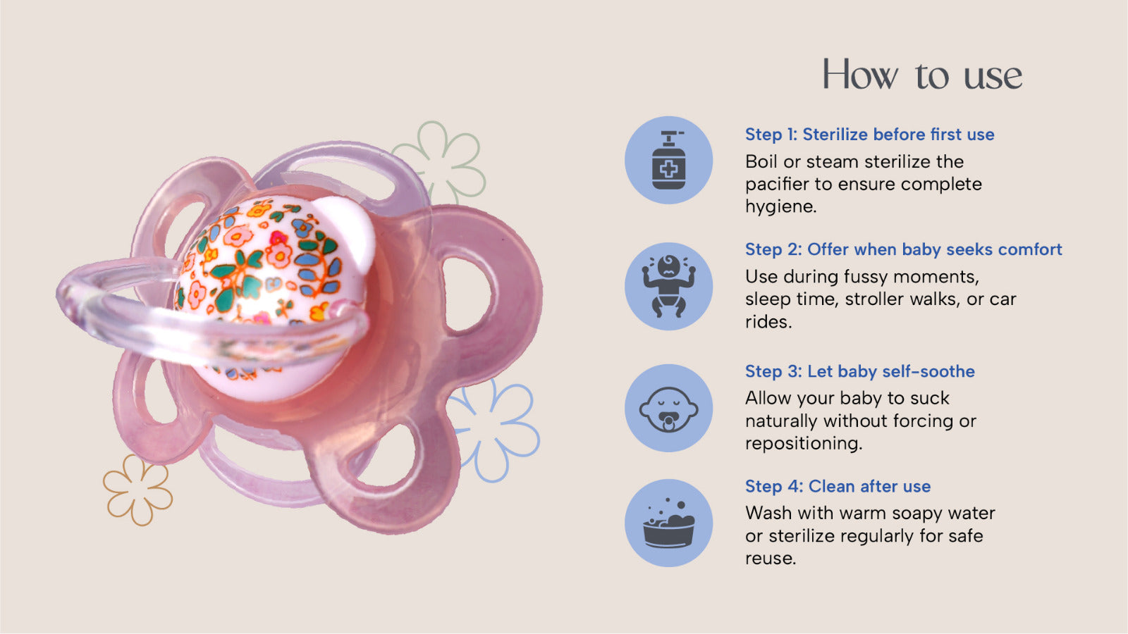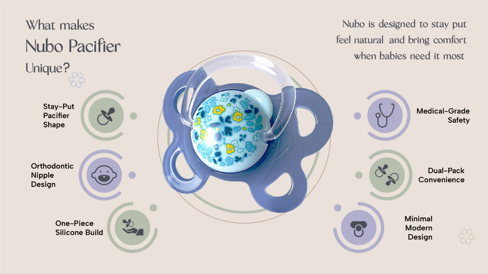 Mimicks natural sucking. Helps babies self-soothe safely and comfortably.
