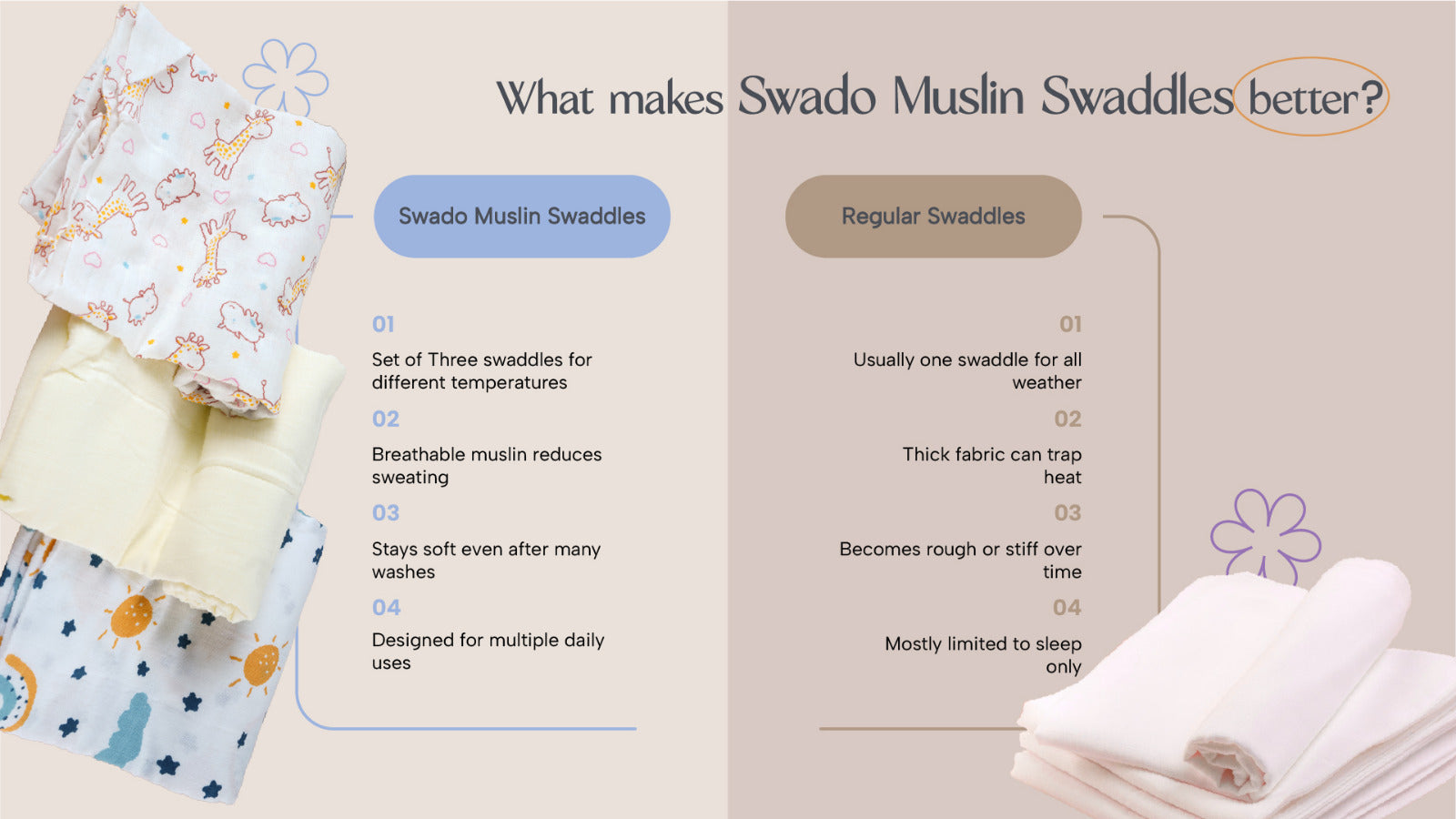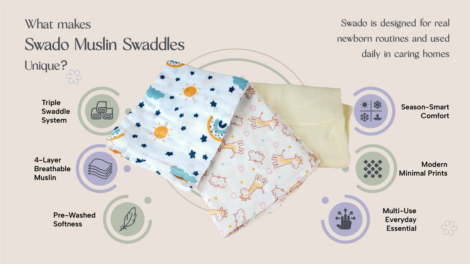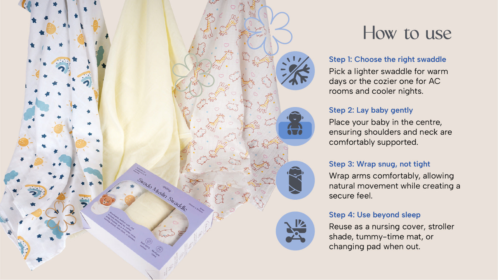 Two lightweight swaddles for warm days and one cozier option for AC rooms and cooler nights. One set that adapts to every weather and sleep routine